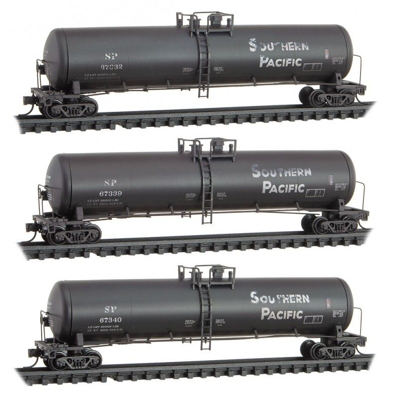 56' General Service Tank Car Southern Pacific SP 67332, 67339, 67340 Weathered 3-Car Runner Pack in Jewel Cases