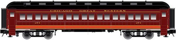 ACF Heavyweight 60' Coach Chicago Great Western CGW 274 (maroon, red, yellow) Ready to Run