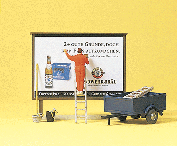 Preiser - Worker On Ladder Putting Up Poster Hoarding Trailer